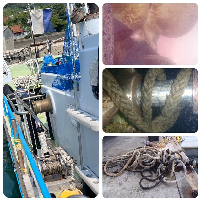 JUN担当:夕方から、K漁協で別の作業!!プロペラに巻いたロープを撤去。