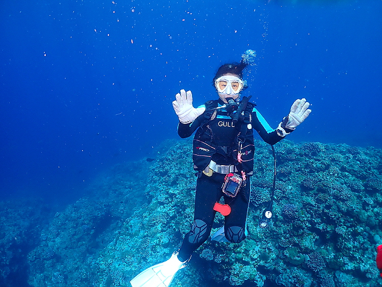 娘さんはダイバーで、お母さんも興味があり、お母さんは、体験をめちゃくちゃ頑張ってくれました。